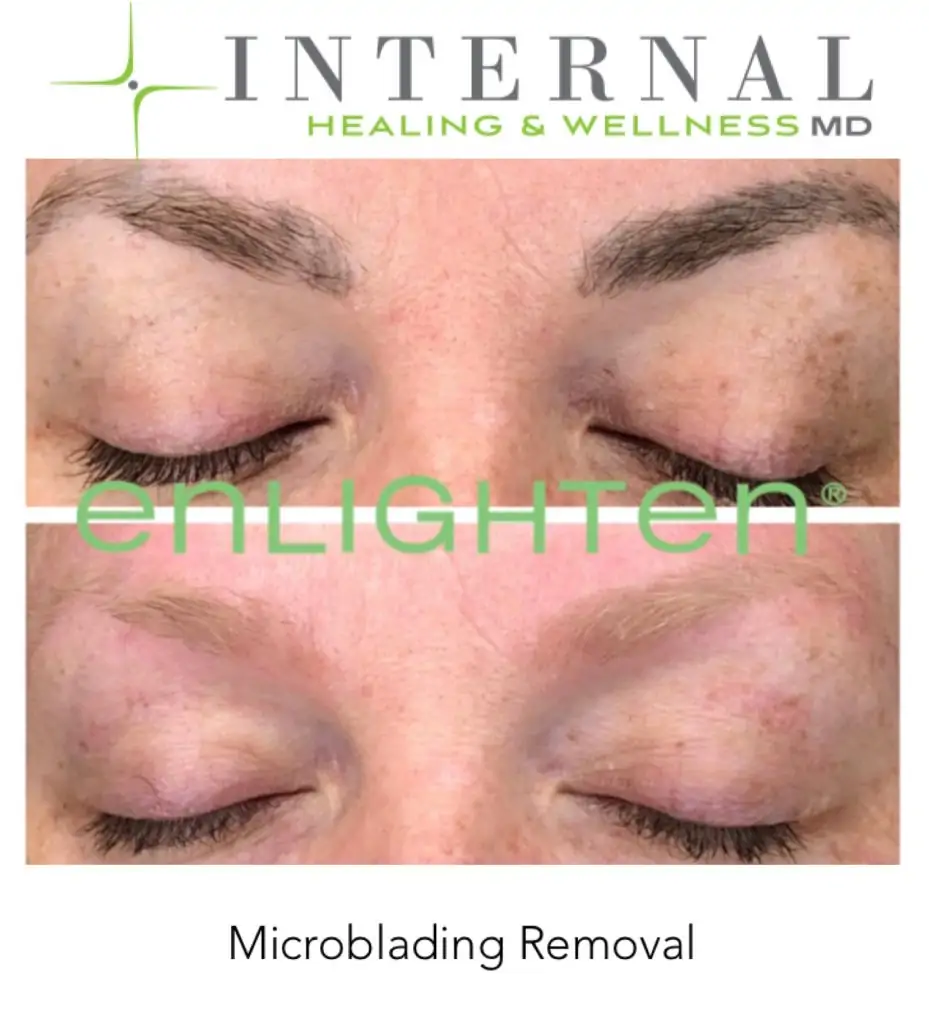 The laser effectively breaks down tattoo ink, allowing for the removal of unwanted eyebrow tattoos and microblading.