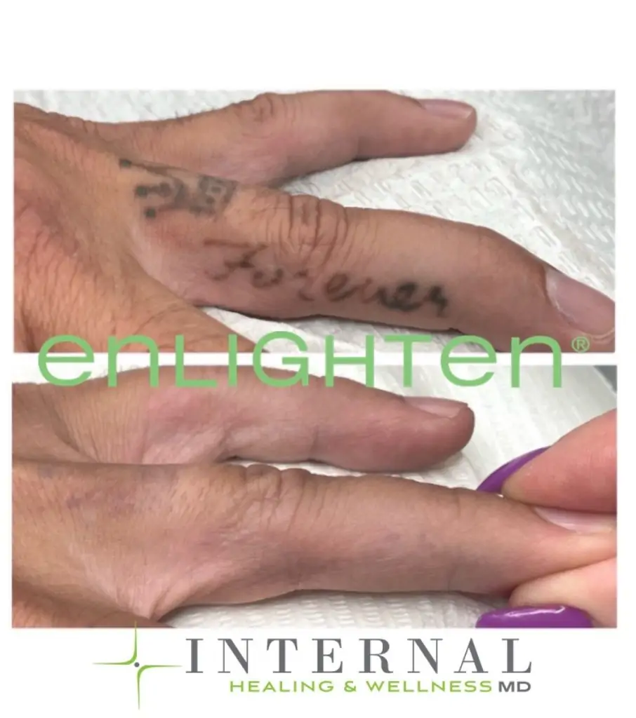 The enLIGHTen™ III laser system offers advanced technology for tattoo removal, utilizing both picosecond and nanosecond pulses along with three light wavelengths to effectively clear tattoos of all colors. This powerful combination enables us to remove unwanted tattoos in roughly half the sessions required by other laser systems.